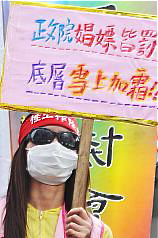 法改正を前に、セックスワーカーの団体が労働権の保障を求めて立法院前で抗議活動を行った(3日=中央社)