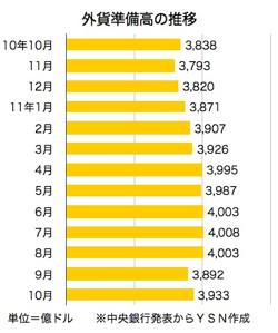 また、10月末時点の外資が保有する台湾株と債券は計2,012億米ドル、外貨準備高全体に占める割合は約51%で、統計開始以来最低だった前月末時点の48%から反転した。