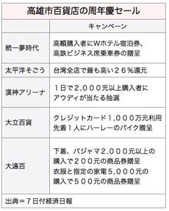 高雄の百貨店業界では、11月の周年慶(創業祭)シーズンで激しい競争が予想されている。
