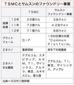 TSMCが受注を目指していたとされるアップルの次世代プロセッサー「A6」は、サムスンが32ナノメートル製造プロセスで受注した伝えられている。しかしTSMCは来年、28ナノプロセスでの量産に全力を注ぎ、クアルコムやエヌビディアなどアップル以外の大手のプロセッサーすべてを受注し、「最大のライバル」とするサムスンの追い上げ阻止に全力を挙げるもようだ。
