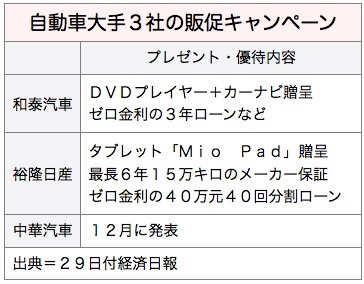 和泰は、今後春節までの約3カ月は自動車業界にとって「戦闘期」となり、同社の販促予算も、3万台が売れるとして20億元に達するとの見方を示した。業界関係者は、和泰は今年上半期に東日本大震災の影響を受けた分を下半期に取り返すべく全力を挙げていると指摘した。