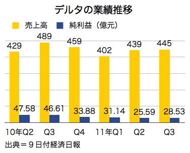 デルタは電源管理製品で創業し、同製品で50%を超えるシェアを持つが、世界経済の変化で事業方向の見直しが求められ、最近は▽電気自動車用の動力システム▽太陽光発電システム▽発光ダイオード(LED)照明▽省エネグリーン建築▽クラウドデータセンター──などへと事業の多角化を進めている。