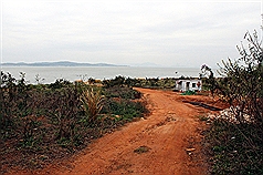 大金門島から望んだ小金門島。大橋がかかれば自動車で5分だ(17日=中央社)