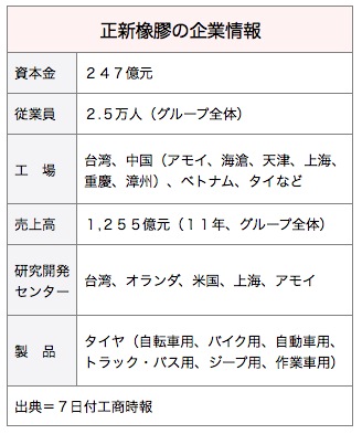 タイヤ大手の正新橡膠工業は、今年200億台湾元(約550億円)を投じて、中国の重慶市、漳州市(福建省)、アモイ市(同)、および台湾の4カ所で生産能力を拡充するとともに、既存工場の設備更新を進める計画を明らかにした。7日付工商時報が報じた。