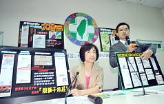 民進党の魏明谷・立法委員(右)らは、「ペーパーレス」になっていないと批判した(4日=中央社)