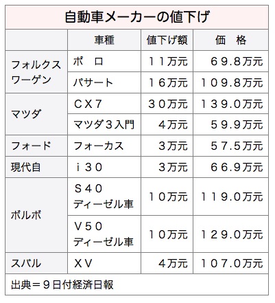 このほか、フォードは台湾生産車を1万~3万元、現代自動車(ヒュンダイ)はコンパクトハッチバック「i30」を69万9,000元から66万9,000元に、ボルボは「S40」と「V50」をそれぞれ10万元値下げしている。