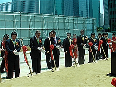 郭台銘・鴻海集団董事長(前左3)は、初めて上海を訪れた1988年から自社ビルを持つのが夢だったと語った(10日=中央社)