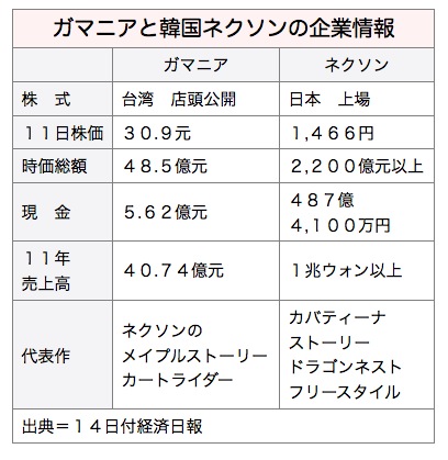 ネクソンは2007年、ガマニアに10%を出資、さらに11年5月には27.08%、今年3月末に33.61%まで出資比率を拡大した。これについて業界では、ネクソンがガマニアの敵対的買収を目指しているとみて、台湾デジタルコンテンツ産業の発展に影響を及ぼすとの懸念が出ている。
