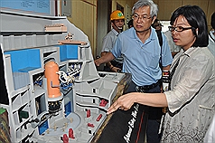 視察に訪れた林淑芬立法委員(右・民進党)は、台電より模型を使って発電所の仕組みについて説明を受けた(14日=中央社)