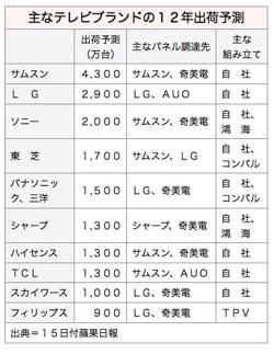 これに対し業界からは、受託メーカーはテレビパネル調達権の獲得で、調達コストの増大と同時にパネル価格の変動リスクにさらされることになるが、大量調達による価格交渉力の向上を背景にパネル価格を抑え、利益拡大が可能になるとの見方が出ている。