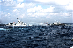 巡視船34隻に加え、上空には偵察機3機とヘリコプター4機が待機して対応に当たった日本側は、警告を無視して尖閣諸島に突進する台湾側の漁船を阻止すべく放水を開始した。その水の勢いは強く、さらに射程距離も長かったため、漁船は激しく揺れ、転覆しそうになったという。