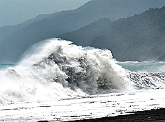 台東県の海岸では高さ20メートルを超えるとみられる大波が押し寄せた(27日=中央社)