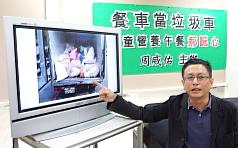 周市議は、ごみを積んだ運搬車の写真を公表し、「いくら優良企業が作った給食とはいえ、この車で運んだ給食は誰も食べたくないだろう」と批判した(2日=中央社)