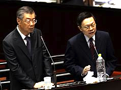 答弁する王主委(右)。陸委会主委が中共最高幹部をほとんど知らないというのはあまりにもお粗末だ(2日=中央社)