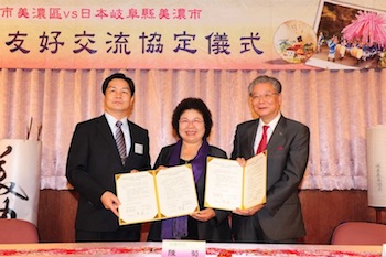 岐阜県美濃市と高雄市美濃区は29日高雄市で、友好交流協定を締結した。両地は同じ地名を持つ縁で2006年からお互いに訪問団を派遣するなど交流を深めてきた。今回の協定締結で、民間、行政、経済貿易、観光、文化交流など幅広い交流を促進し、友好関係をさらに深めたい考えだ。29日付聯合報などが報じた。