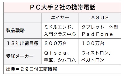 一方、華碩(ASUS)は、スマートフォンとタブレット型パソコンを一体化させた「PadFone」シリーズを引き続き推進していく方針で、今年のスマートフォン出荷目標を100万台としている。