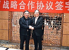 台湾セメントの辜成允董事長(右)と中国建材の宗志平董事長(左)。両社は現在4~5件の共同買収案を協議中だ(3日=中央社)