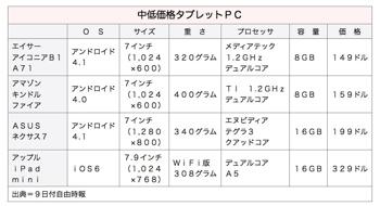 Iconia B1は、当初はアジアおよび南米市場で、今月から2月にかけての発売を予定している。OS(基本ソフト)にはアンドロイド4.1を採用し、聯発科技(メディアテック)の1.2ギガヘルツ(GHz)デュアルコアプロセッサーを搭載する。ディスプレイの解像度は1,024×600ピクセル、記憶容量は8ギガバイト(GB)で、華碩電脳(ASUS)の「ネクサス7」や米アマゾン・ドット・コムの「キンドル・ファイアHD」(ともに199米ドル)と比較するとスペックが見劣りするため、消費者の反応を懸念する声も 出ている。これについて翁建仁エイサー世界総裁は、他社のタブレットと使用感で差を感じることはないと説明。タブレットPC初心者や子どもなどの入門市場や、サラリーパーソンの携帯用などのニーズを見込む。