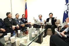 台湾石油工会の荘爵安理事長(右2)や台電などの公営企業の工会理事長らは9日、立法院を訪れ工会の立場を説明し、合意の撤回を求めた(9日=中央社)
