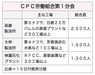 立法院の与野党議員団が8日、台湾中油(CPC)や台湾電力(台電)など公営企業のボーナスについて、2012年度分から▽利益がなければ支給しない▽最高支給月数を従来の2.6カ月から1.2カ月に半減させる──ことで合意したことを受け、CPCの労働組合「台湾石油工会」のうち、会員数が最大の「第1分会」は9日、政府から納得のできる説明がなければ5,300人の会員が春節(旧正月)期間、一斉に9日間の休暇を取得するとの声明を発表した。これにより高雄市の高雄製油所および大林製油所、林園石油・化学プラントの稼働に影響が出る可能性が浮上している。10日付経済日報が報じた。