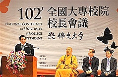 馬総統(左1)は、台湾の大学は中国人留学生の増加を期待する反面、台湾人学生を中国側に奪われると懸念していると語った(14日=中央社)