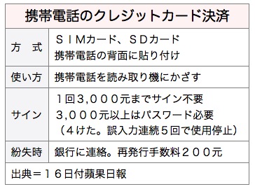 携帯電話によるクレジットカード業務を試験導入しているのは、▽国泰世華銀行(キャセイ・ユナイテッド・バンク)▽中国信託商業銀行(チャイナトラスト)▽台北富邦銀行▽聯邦銀行(ユニオン・バンク)▽台新銀行──の5行。
