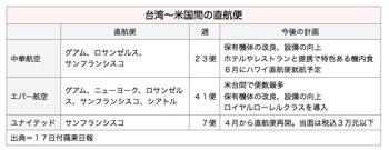 同社は、米国ノービザ実施で観光客が増えると見込まれ、米台貿易の安定成長でビジネス客の行き来も盛んなためと説明した。