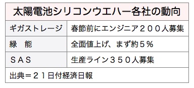 国碩科技工業(ギガストレージ)や中美矽晶製品(シノアメリカン・シリコン・プロダクツ、SAS)も値上げを検討している。ギガストレージは生産能力300メガワット(MW)をフル稼働とし、春節期間は休まず生産する計画だ。