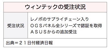 ウィンテックはまた、華碩電脳(ASUS)からは11.6インチと13.3インチのOGSタッチパネルの追加受注を受けた。