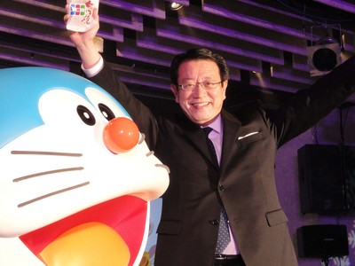 小室裕一郎JCB台湾総経理は、台湾の会員は20代後半が2割、30代が5割と比較的若いため、ドラえもんでイメージアップが期待できると語った(21日=中央社)