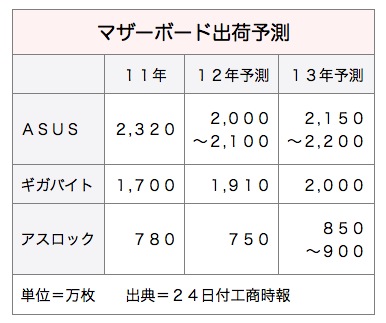 インテルがこのほど、第2四半期に省電力プロセッサ「Haswell」を発売した後、デスクトップ型パソコン向けマザーボードの開発を終了し、3年以内に同部門を解散すると表明した。これを受けて24日付工商時報は、インテルが撤退することで生まれる需要は、台湾の華擎科技(アスロック)、技嘉科技(ギガバイト・テクノロジー)、華碩電脳(ASUS)が分け合うことになるとの見方を示した。