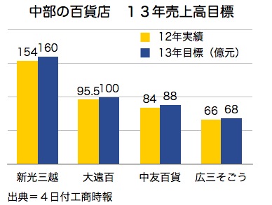 中友百貨の今年の売上高目標は88億元(昨年84億元)、広三そごうは68億元(66億元)で、大手4社で400億元を超える予測だ。