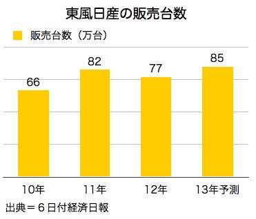 東風日産乗用車は昨年、尖閣諸島(沖縄県石垣市、台湾名・釣魚台列嶼)の争議をめぐる日本製品の不買運動の影響を受け、販売台数が前年の82万台から77万台まで落ち込んでいた。