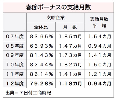 調査は企業500社の経営者と1,100人のサラリーパーソンを対象に行われた。「春節ボーナスを支給する」と回答した企業は79.28%で、前年比6.86ポイント低下。金融危機のあった08年度の63.93%に次ぐ低い数値となった。また「春節ボーナスを支給しない」との回答も含めると、支給月数の全体平均は0.94カ月で08年度と同じ水準となった。春節ボーナスの平均支給額は5万8,153元だった。