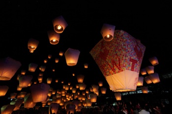 現場に駆けつけた馬英九総統と朱立倫・新北市長の手によって点火された巨大ランタンが、200個のランタンとともにゆっくりと上昇していくと周囲からは口々に「きれいだ」との声が上がった。