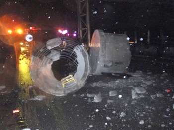 事故当時は夜明け前で小雨が降っており、ワゴン車は転がってくるコンクリート管を避け切れなかったようだ。