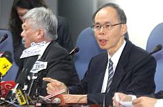 陳・捷運工程局長(右)は22日、今回の問題は行政に責任があるとし、自身の進退については「郝市長の判断に任せる」と語った(22日=中央社)