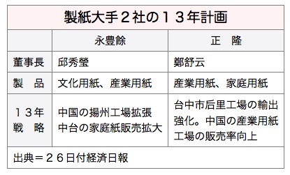 製紙最大手の永豊餘投資控股(YFY)について証券会社が、トイレットペーパー・ティッシュペーパーなど家庭紙の今年の中台での売上高が約2割成長し、100億台湾元(約310億円)を突破するとの予測を示した。26日付経済日報が報じた。