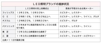 パナソニック・エコソリューションズ社が2015年にも家庭用蛍光灯の出荷を取りやめ、すべて発光ダイオード(LED)照明に切り替える方針を固めるなど日系メーカーのLED移行に伴い、日系メーカーと関係が深い台湾メーカーも今後恩恵を受ける見通しだ。11日付蘋果日報が伝えた。