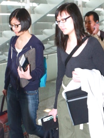 円山大飯店でのパーティーを終え、10日に離台した馬唯中さん(左)。記者の呼び掛けにも無言を貫いた(10日=中央社)