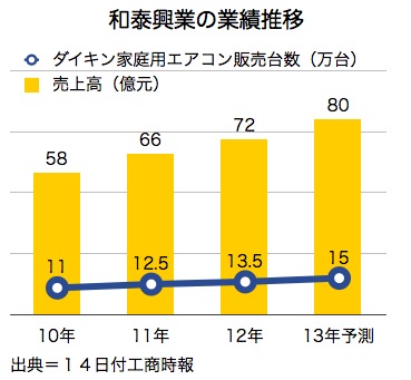 蘇一仲董事長は、3~4年前から決済通貨を米ドルに切り替えており円安進行の恩恵はないが、消費者の期待に応え、今年の家庭用エアコン販売目標15万台を盾にダイキン工業の協力を勝ち取ったと話した。