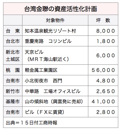 台湾金聯はこれまで不良債権の買い取り処理が主力だったが、台湾の銀行の不良債権比率が過去最低水準まで低下していることや、金融監督管理委員会(金管会)が銀行の不良債権売却条件を厳格化したことなどを受け、保有資産の活性化を新たな事業の柱に据えることにした。