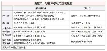 高雄市政府の市政会議は19日、容積率移転で建設業者が市政府に納付する費用の半額を公共施設の寄贈で賄うことを認めることを決めた。半額は現金で納付しなければならない。また、容積率移転の対象地域を市内全域に拡大することも決めた。7月1日から実施される。20日付工商時報が伝えた。