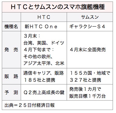 スマートフォン最大手、宏達国際電子(HTC)は24日、旗艦機種である「新HTC One」を今週、台湾、英国、ドイツで先行発売すると発表した。その他の欧州、北米、アジア地域でも4月下旬までに投入する。4月末に発売が予定されているサムスン電子の「ギャラクシーS4」と発売時期が接近することで、正面対決を強いられることになった。25日付経済日報が報じた。