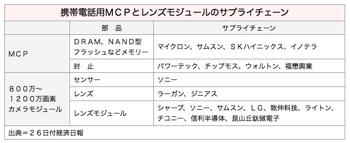 最近、マルチチップパッケージ(MCP)および800万〜1,200万画素のレンズモジュールといった携帯電話用部品の供給がひっ迫状態にあり、IC設計大手の聯発科技(メディアテック)は顧客に対し、第3四半期のハイシーズンにはこれら部品が供給不足に陥る可能性があり、早期に調達を行うよう提言している。26日付経済日報が報じた。