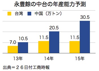 一方、工業用紙大手、栄成紙業の鄭瑛彬董事長は同日、今年中国・無錫工場(江蘇省)に年産25万トンの生産ライン1本を増設、また既存の同10万トン生産ラインの更新を行うことを明らかにした。両生産ラインは8月の稼動予定だ。総投資額は1億4,000万米ドル。また、平湖工場(浙江省)では第3次拡張計画を申請中で、早ければ年内にも建設許可が下りる見通しだ。16年の稼働を予定し、中台での工業用紙生産能力が255万トンに達すると見込む。