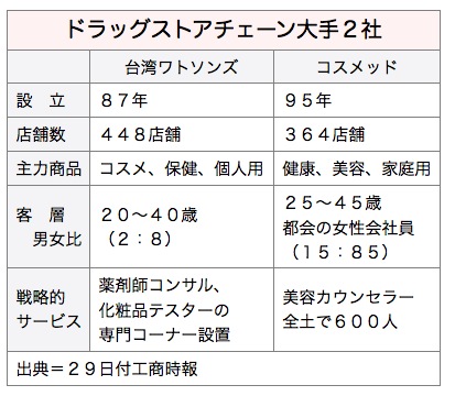 台湾ワトソンズは今年、薬剤師のカウンセリングコーナーや独立した化粧品テスターコーナーを増設する。年初から既に小型店を14店オープンしており、通年で小型店30〜50店を出店し、台湾全土で500店を目指す。現在は448店だ。