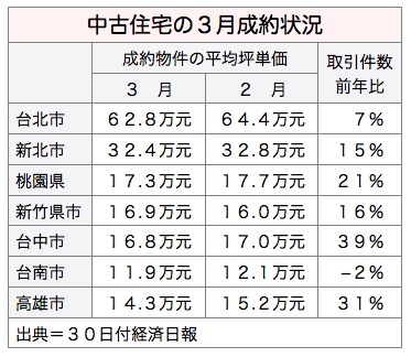 また信義房屋によると、3月は中古物件でも販売好調が目立った。これは不動産業界の伝統的なキャンペーン期間「329檔期」(3~4月)を迎えて新築物件の取り引きが活発化したことで、中古市場にも余波が及んだとみられる。