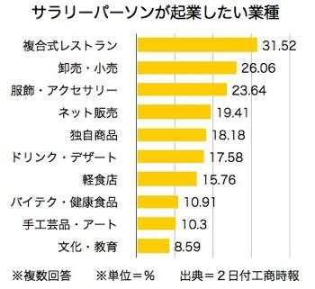 起業したい業種は、複合式レストランが31.52%(複数回答)で最多だった。