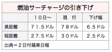 今回の引き下げは台湾中油(CPC)が2日に発表した航空用燃油価格が1バレル当たり131.86米ドルと従来から10.27米ドル低下し、価格調整の条件に達したため実施する。